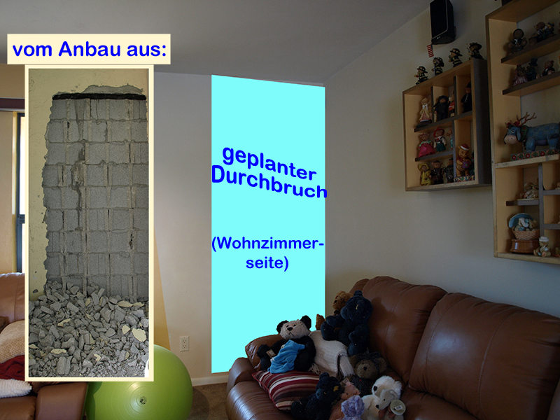 Da sollte man eher von einem Hammer sprechen, wenn man sich den Bohr- und den Vorschlaghammer anschaut, mit denen Jürgen heute der Zwischenwand vom Anbau zum Wohnzimmer zu Leibe rückt!