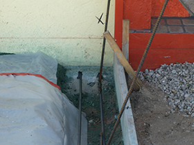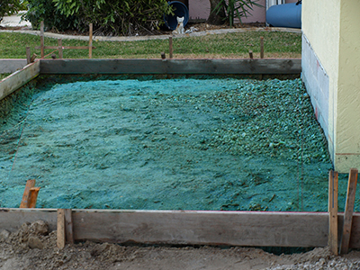 The pest control is here even earlier to spray the whole addition area with an anti-termite treatment. A nice green color, isn't it?!
