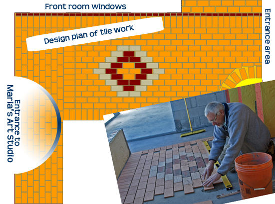 After we tried several variations of "dry" laying the tiles Juergen started laying the tiles on the patio today.