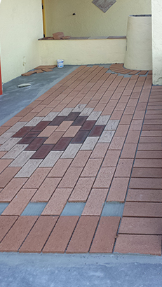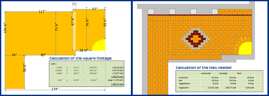 As planned we use the same tiles as on the lanai and in the entrance area. We had bought them at the Ruck Brothers Brick Ruck Brothers Brick Inc