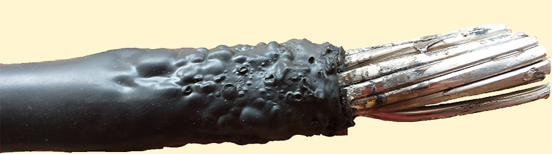 The last bit of cable connecting to the breaker box had overheated and the plastic around it was melted already.