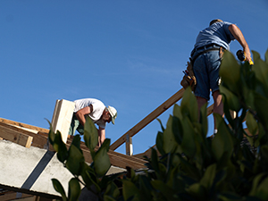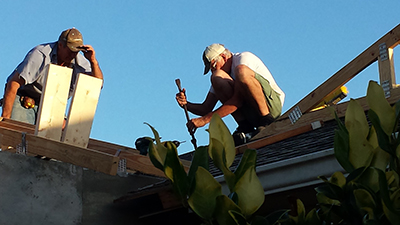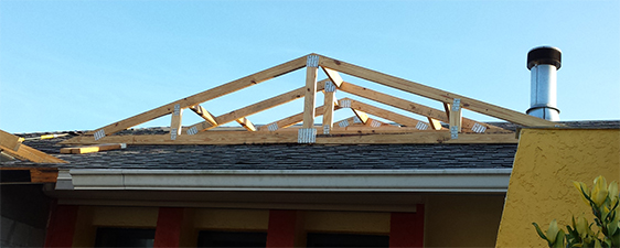 There are still a view preparations to be done like cutting into the overhang of the existing roof and leveling the installed trusses.