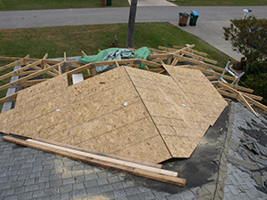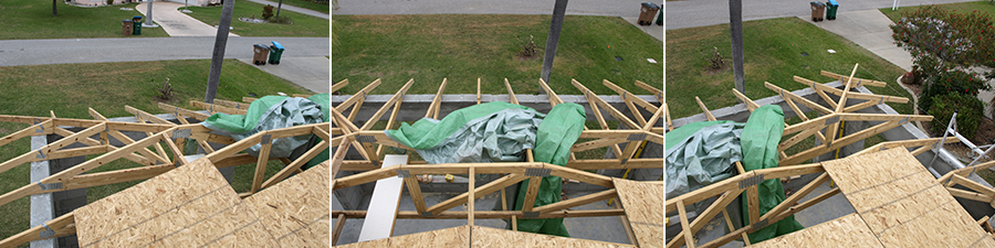 they even managed to protect the open roof by putting plywood sheats on the valley trusses: