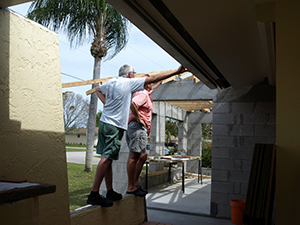 After lunch Juergen and Patrick start to level the valleys according the bevel of the existing roof.