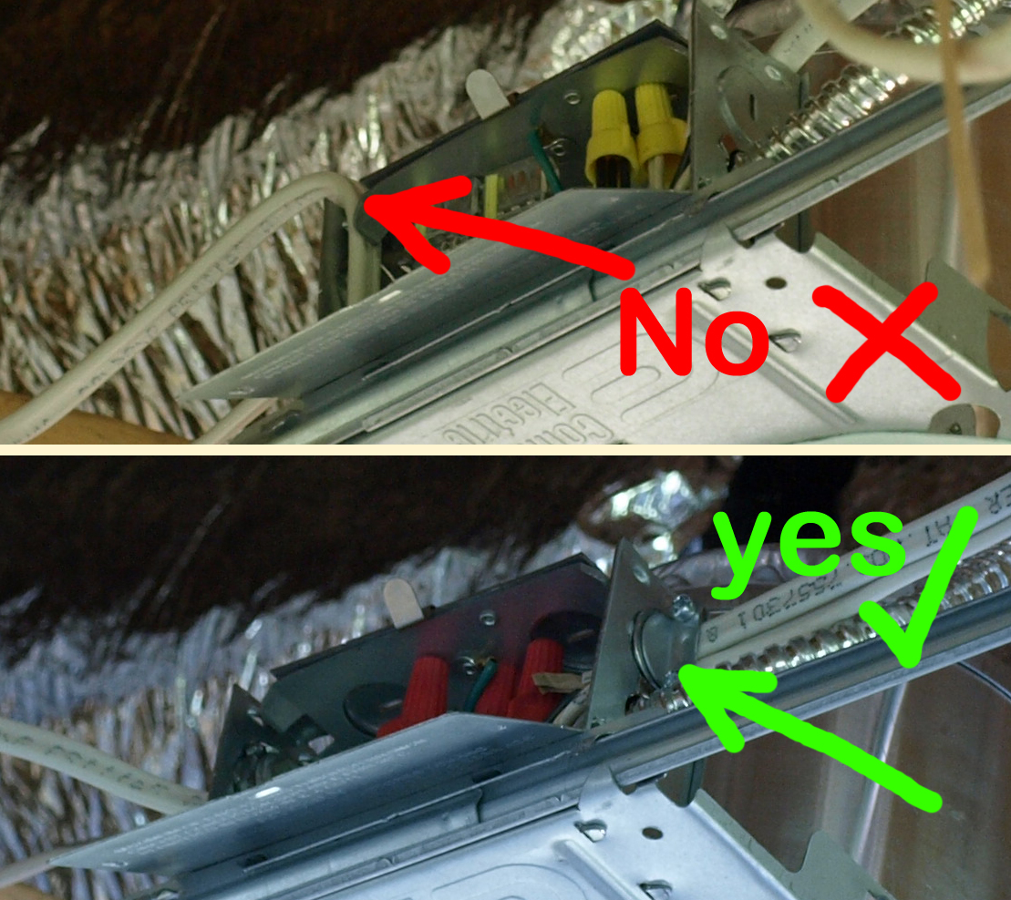 As per NEC and Florida Building Code the cables have to be installed with a minimum edge distance to the furring strips and inside of metal pipes to avoid accidents: |