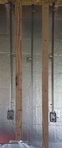 As he installs the boxes and conduits on the insulation boards half of the electrical work is done already, too.