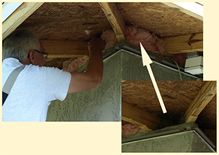 A few opening have to be filled from the outside as they are unreachable from inside before we can say: "The ceiling insulation is ready!" |