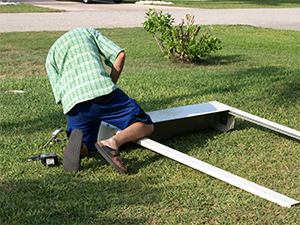 The rolldowns came in parts, i.e. Juergen has to assemble the tracks, the box, the shaft, the motor and the shield.