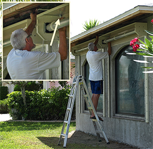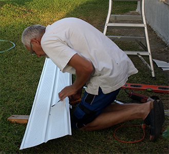 Juergen starts the work on the soffits. Especially the corners are difficult.