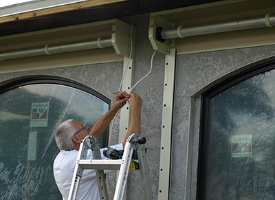 After the casement shutter Juergen installs the rolldowns over the archtop windows, too: