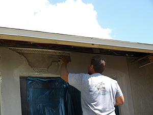 Around lunch John, our stucco guy, comes by to repair the stucco around the patio door.