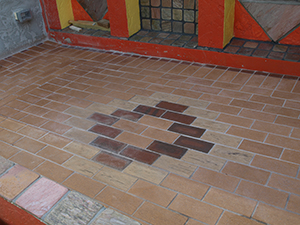 It took some time but now the right grout was available at the DIY store. Juergen is able to grout the last bit of tiles on the patio.