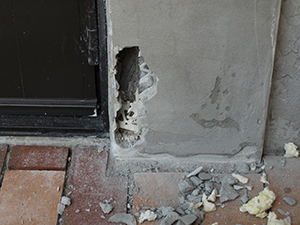 There are still hollow parts in the stucco on both sides of the patio doors!