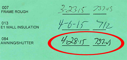 At about 9.30 am today the building inspector comes to check how we installed our shutters. When he checked the FL number on the shutters we realise that we got the wrong documents for our shutters. Fortunately that is not a big problem as Maria knows how to download the right paperwork from the website of the "Florida Building Code Online". She just prints the papers and presents them to the inspector. |