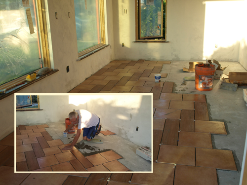 The floor will get a Mediterranean flair patterned by using these two type of tiles: