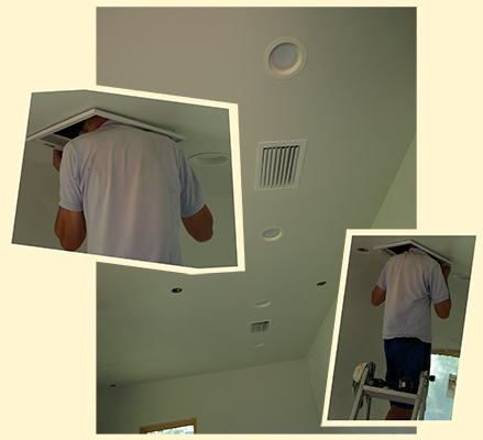 Yesterday all plastering and sanding work has been finished, i.e. no more dust. Now the a/c grids on the return and outlets may be installed. |