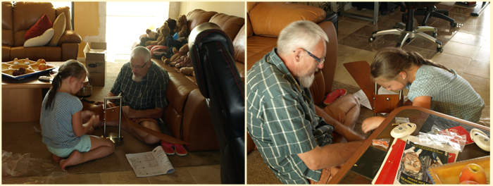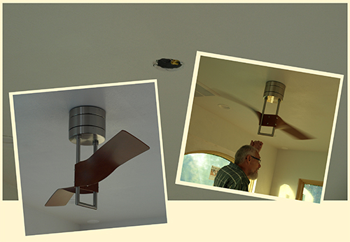 Juergen and ourr "House elf" Johanna start to put the pieces together for the installation of the fan: