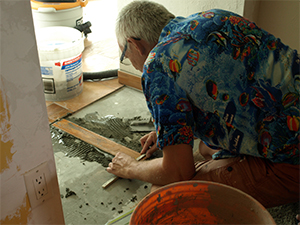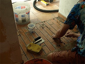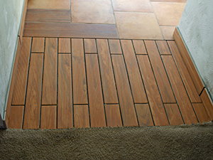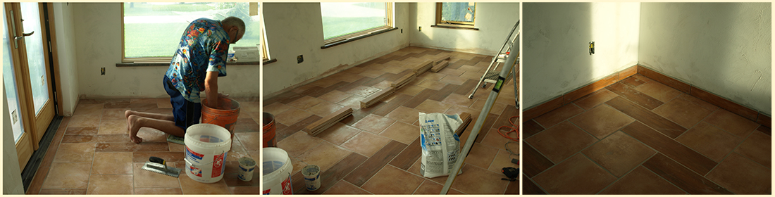 We decide to use them for the opening to the front room as we have run out of the regular floor tiles: