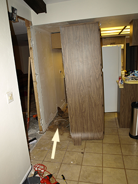 When we moved the tall cabinet there was proof of it being made of press board, you could have used the remains for mulch (caused by many years of water leakage from the fridge by its side):